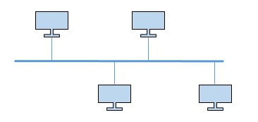 3) 버스(Bus) 형: 하나의 긴 케이블에 컴퓨터를 연결하는 방식(일반적으로 많이 사용)