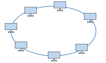 2) 링(Ring) 형: 컴퓨터들이 서로 운처럼 연결된 방식
