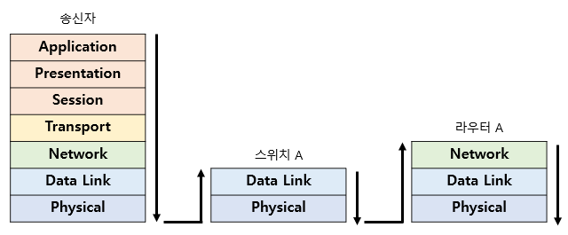 수신자의 각 계층은 헤더를 확인 및 분리한 뒤 상위 계층으로 올리는 작업을 반복한다.