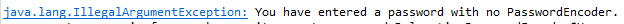 PasswordEncoder를 구현하지 않아서 생긴 문제이다.