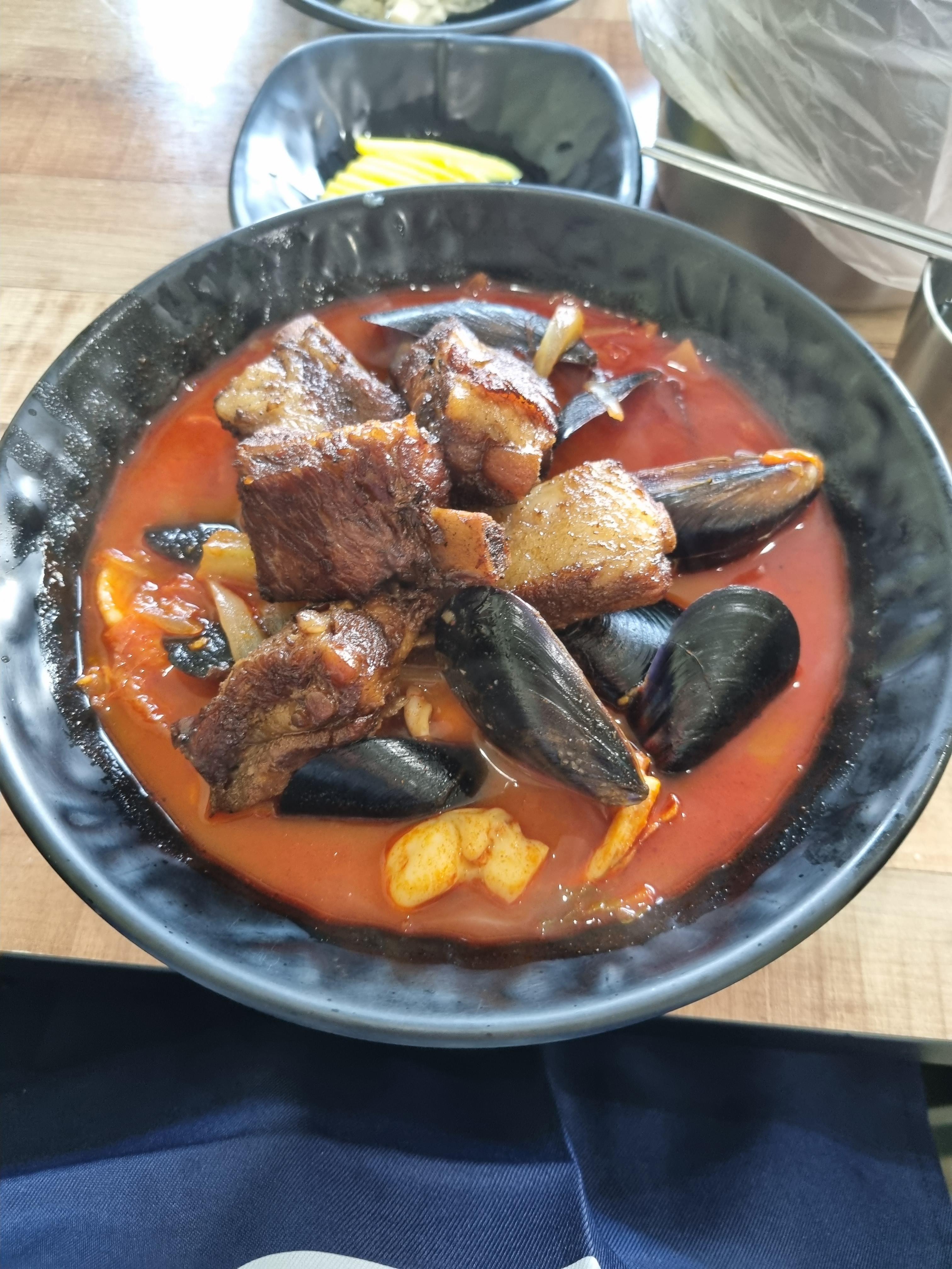 점심은 갈비짬뽕을 먹었다. 갈비가 매우 부드러웠다. 갈비와 짬뽕이 어우러지진 않았다.