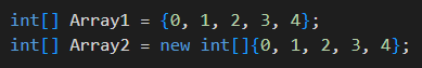 둘 다 결과는 같은데, 선언과 초기화를 따로 할 땐 Array1의 방법을 사용할 수 없다.