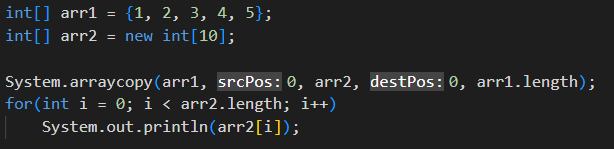 하지만 java에선 배열 복사를 위한 메서드 arraycopy()를 제공한다. 형태는 아래와 같다.