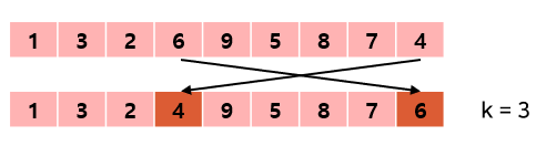 이제 아래 그림처럼 pivot과 k번째 인덱스의 위치를 바꾼다.