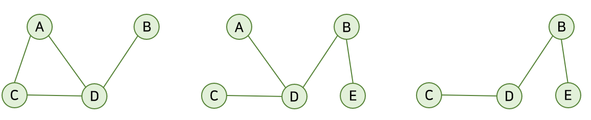 E(G1) = {(A, B), (A, C), (A, D), (B, C)}
