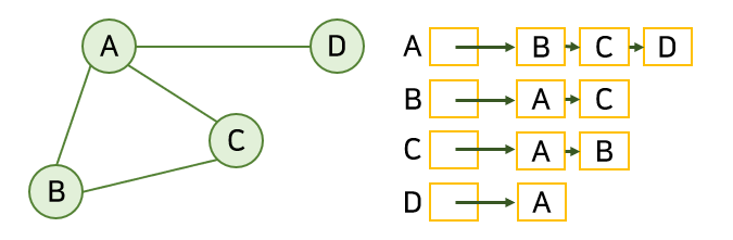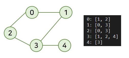 각 정점마다 인접 정점의 정보를 리스트로 담고 있음을 알 수 있다.