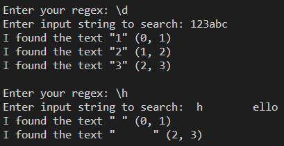 먼저 \d는 0 ~ 9이므로 1, 2, 3이 출력되었고,