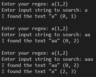 위의 예에선 .*+가 string을 전부 소유해 버려서 foo가 남아 "No match found"가 출력되었다.