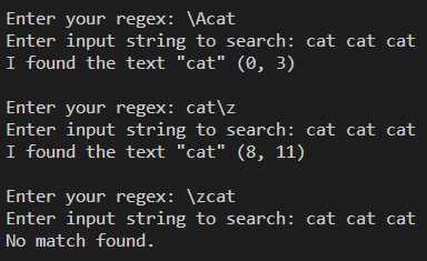 \A는 입력의 시작부,\z는 입력의 마지막 부를 찾는다.