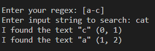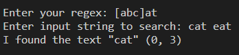 해당 표현식은 "aat", "bat", "cat"를 찾는다는 의미이며 이에 해당하는 "cat"가 출력됐다.
