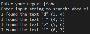 다음 예는 "[^abc]at"를 표현식으로 활용한 것이다.