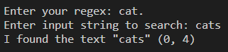 regex는 "cat."을 넣었는데 일치하지 않음에도 "cats"를 반환했다.