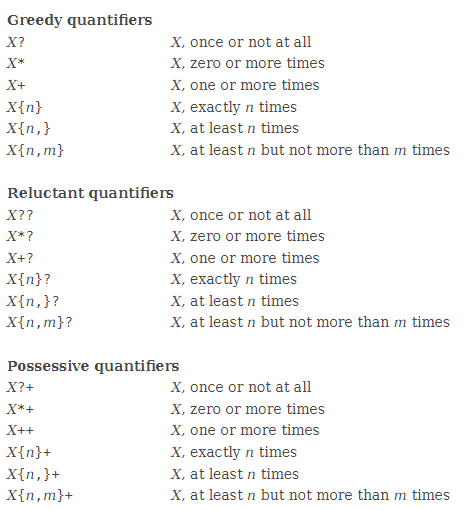 위부터 Greedy, Reluctant, Possessive 순이다.