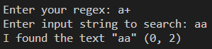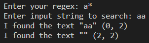 "*"이다. 0번 이상이므로 "aa"로 묶여서 한 번에 출력되었다.