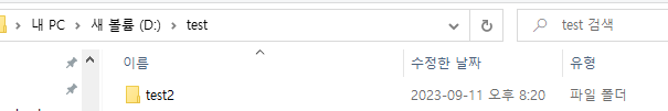 예를 들어 D 드라이브에 test 폴더가 있다고 했을 때