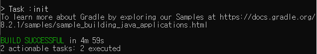 2. gradle init 명령어를 입력한다.