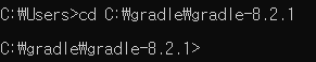 cd C:\gradle\gradle-8.2.1을 입력했고 그 위치로 이동했음을 알 수 있다.