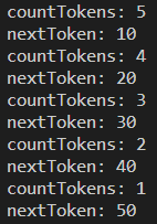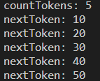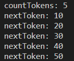 10, 20, 30, 40, 50 총 5개로 나눴으므로 countTokens()는 5이다.