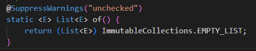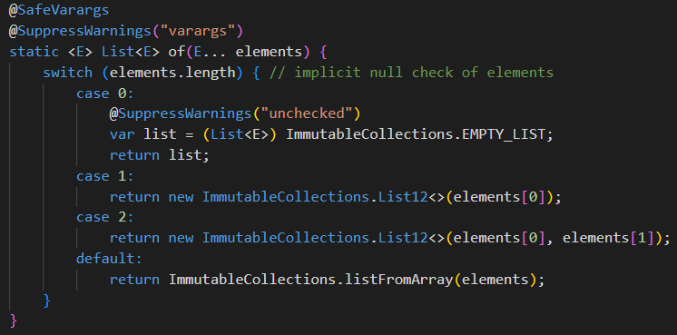 실제로 Immutablecollections 클래스를 찾아보니 List가 아니라 처음 보는 List12와 ListN을 활용하는 것을 확인할 수 있었다.