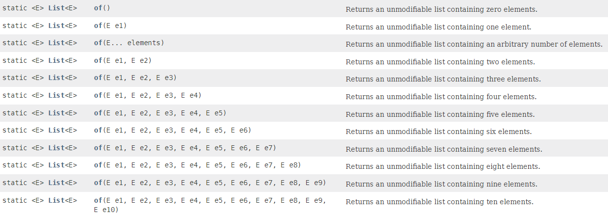 | List.of | Arrays.asList | Collection.emptyList | |