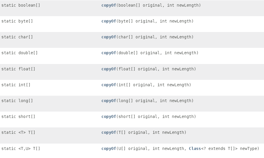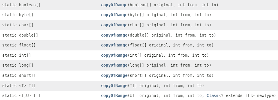 Java Arrays 클래스엔 배열 복사 기능을 제공하는 copyOf와 copyOfRange 메서드가 있다.