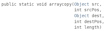 System 클래스의 arraycopy는 아래의 매개변수를 가진다.