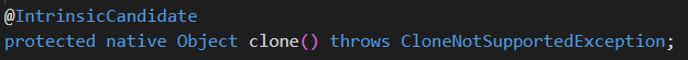 아래는 clone() 코드인데 여기에도 @IntrinsicCandidate 어노테이션이 붙어있다.