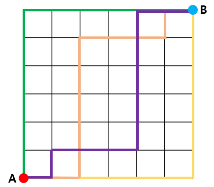 맨해튼 거리에 의하면 각 방법의 길이의 합은 모두 같다.